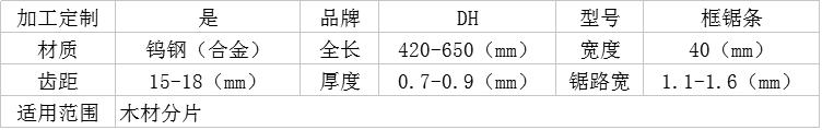 木工框鋸條參數(shù)表
