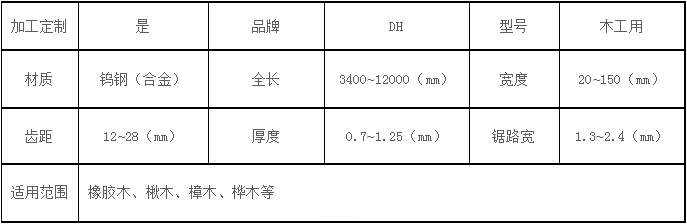 中低硬性木材鋸條參數(shù)表